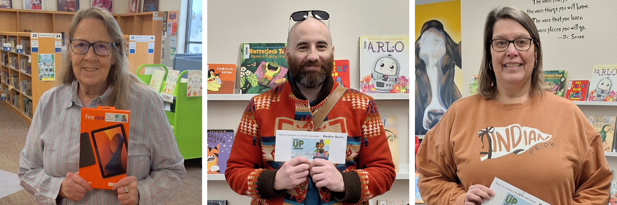 Robey Memorial Library is proud to congratulate the recipients of the random drawing for Waukon Bucks and gift certificates: Nic Hay and Traci Byrnes. Carmel Schulte is the winner of the eReader tablet.