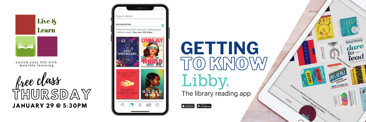 Robey Memorial Library’s January Live & Learn program is a Getting to Know Libby on Thursday, January 29 at 5:30 pm in the lower level Community Room. Learn to download free audiobook, eBooks, & magazines; navigate the website; and use the Libby app. If you have been using BRIDGES/Libby come to see what is new!